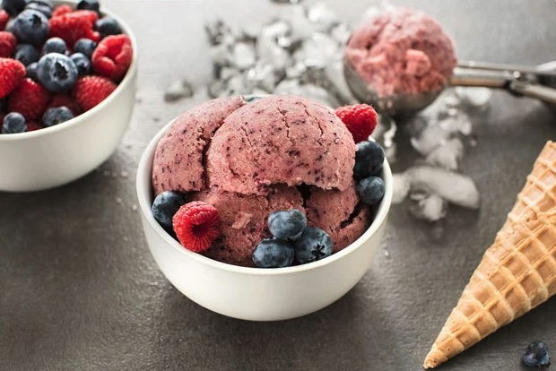 Coloca poco a poco la fruta congelada en el Slow Juicer de Panasonic, que además de su función de preñado en frío, agrega el endulzante que consideres necesario y finalmente agrega un poco de yogurt griego para obtener una consistencia más cremosa. No olvides cambiar el extractor de prensa en frío por el accesorio para congelados.